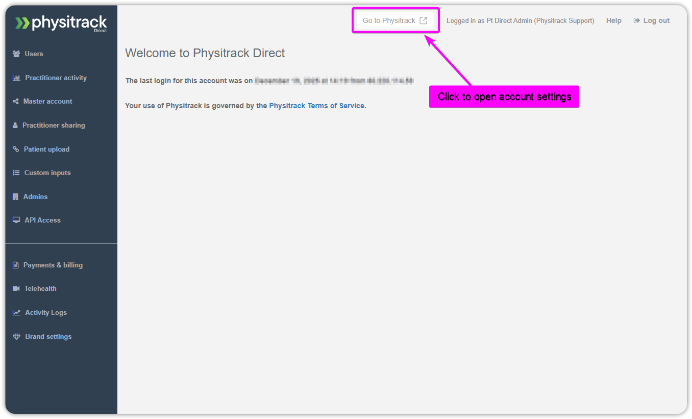 Enabling 2FA for the Physitrack Direct account owner and admin users without practitioner access