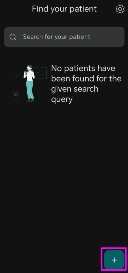 To add a patient, you have to tap on the bottom right corner on the "+" sign