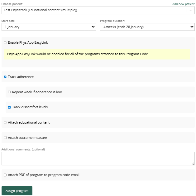 Simply check " Track adherence" and/or "Track pain levels" if you'd like to track adherence and/or pain levels.
