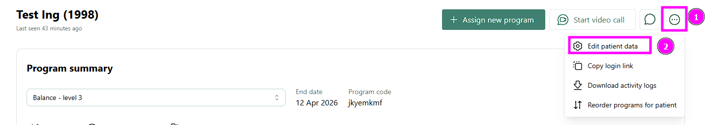 - Click the 3 dots to go to the patient(s) settings.