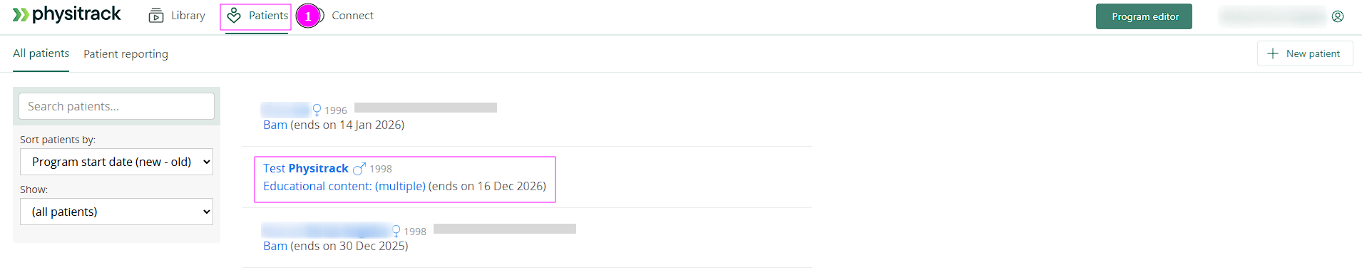 - Click on Patients at the upper left and select the patient whose message(s) you want to read.