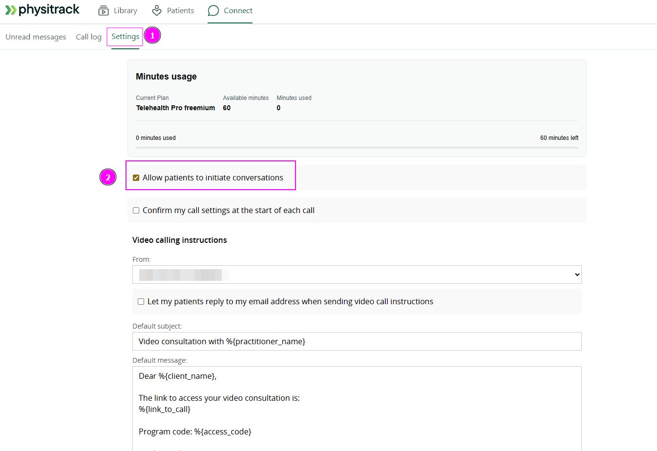 - Then click Settings at the top of the screen and tick the box next to Allow patients to initiate conversations.