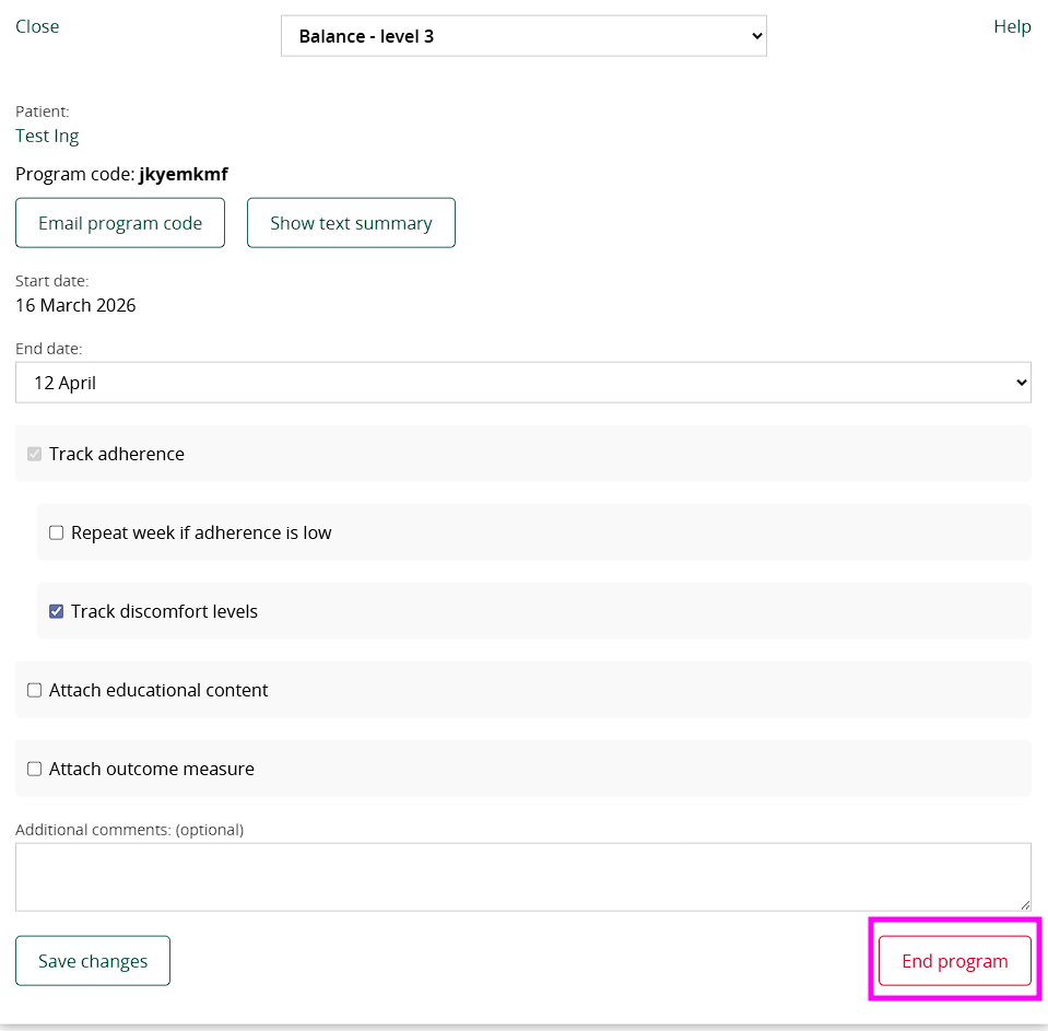 Beenden Sie das Trainingsprogramm eines Patienten