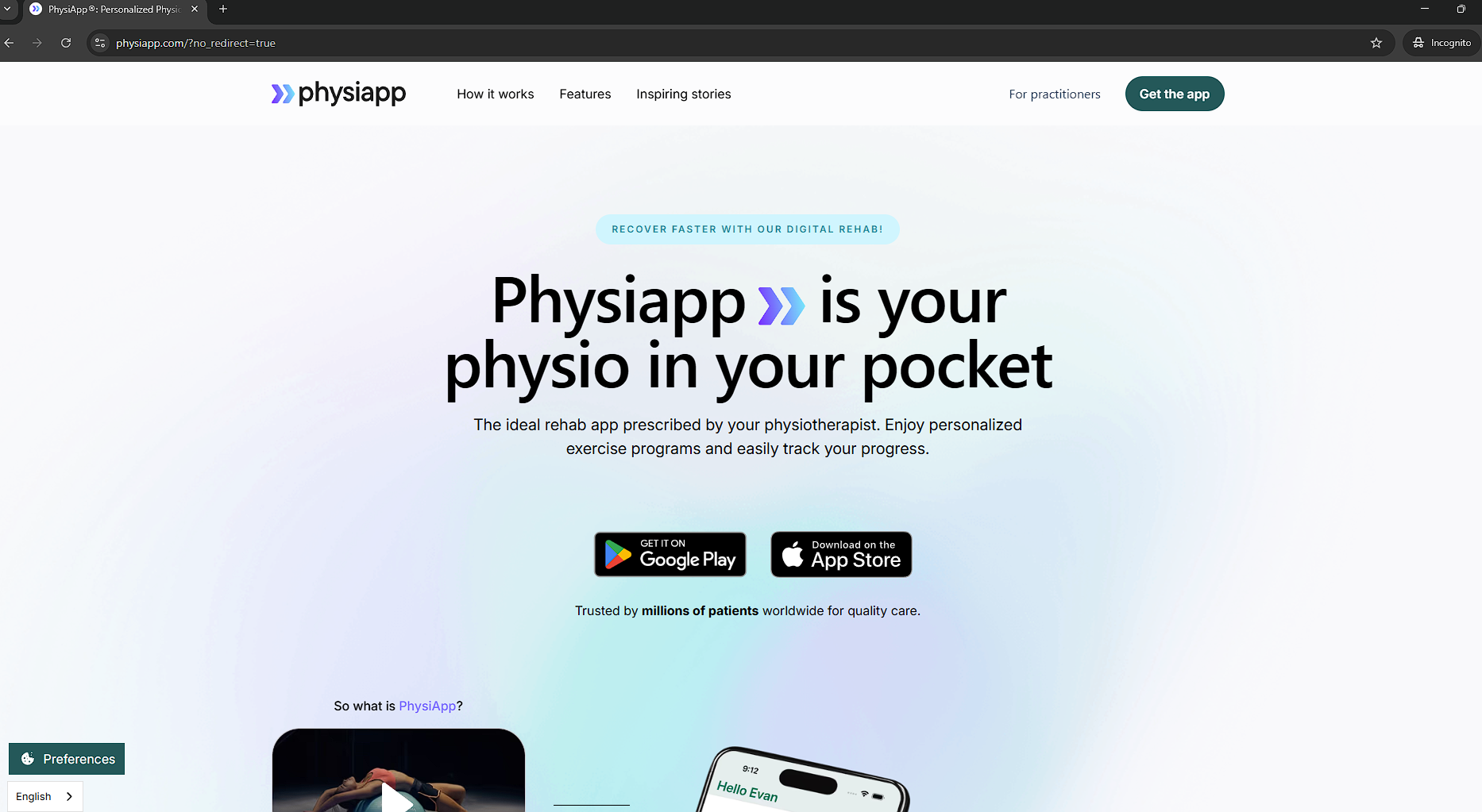 PhysiAppist im Internet, für iOS und Android verfügbar. Es handelt sich um eine kostenlose Plattform, über die Patienten auf ihr verschriebenes Trainingsprogramm und Ratschläge zugreifen sowie mit ihrem Arzt kommunizieren können.