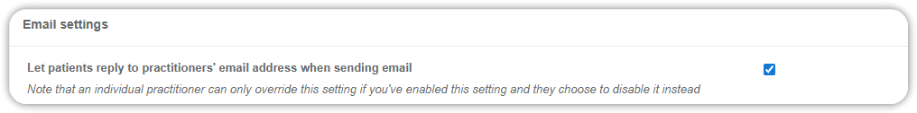 Beachten Sie, dass ein einzelner Praktiker diese Einstellung nur dann außer Kraft setzen kann, wenn Sie diese Einstellung aktiviert haben und er sie stattdessen deaktivieren möchte.