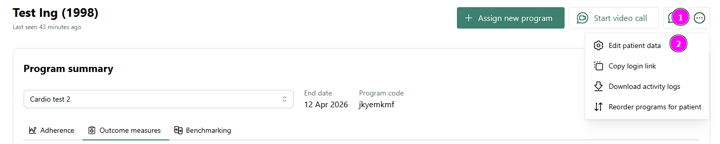 - Klicken Sie oben rechts auf die Schaltfläche mit den drei Punkten, um zu „Patientendaten bearbeiten“ zu gelangen.
