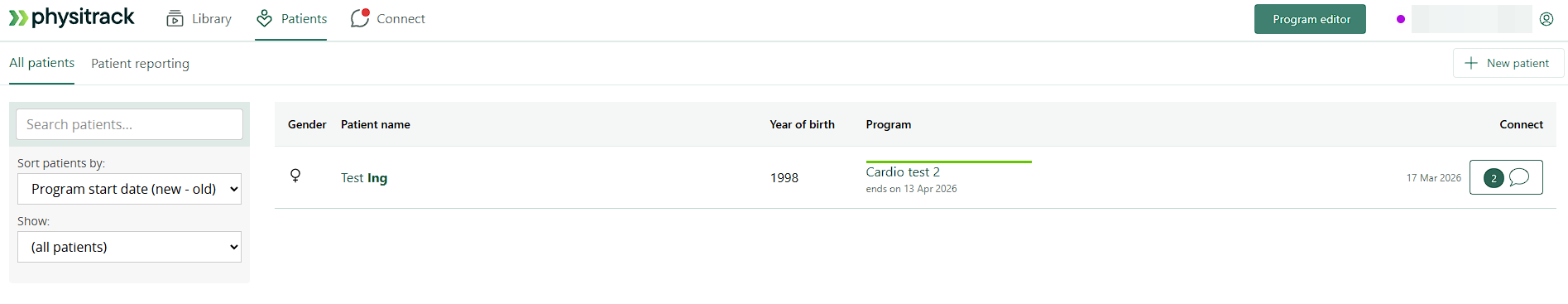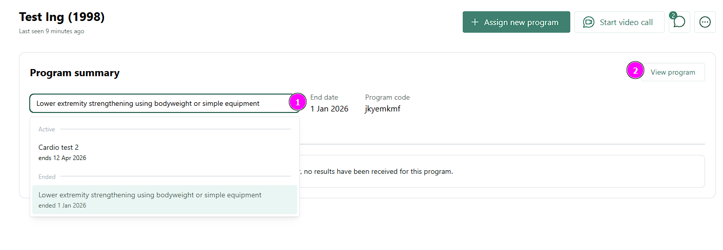 - Napsauta kohtaa Potilaat ja valitse sitten se potilas, jonka päättyneen liikuntaohjelman haluat määrittää uudelleen.