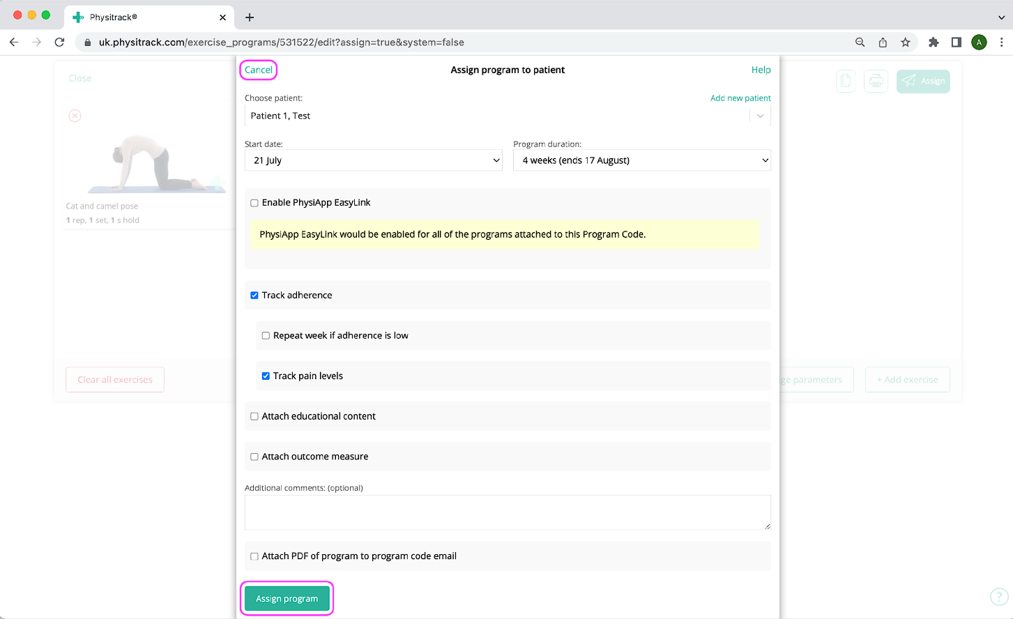 Jo päättynyt harjoitusohjelma voidaan joutua osoittamaan uudelleen. Ehkä potilaan oireet eivät ole hävinneet, tai haluat, että harjoitusohjelma kestää pidempään kuin 52 viikkoa (Physitrack-harjoitusohjelmien raja). Tällä sivulla kerrotaan, miten tämä tehdään.
