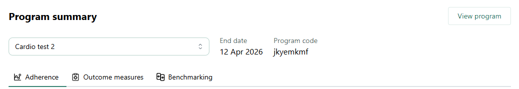 - Seuraavassa osiossa voitvalita liikuntaohjelman(jos potilaalla on tai on ollut useampi kuin yksi aktiivinen liikuntaohjelma) sekä tarkastella liikuntaohjelmanpäättymispäivääjaohjelmakoodia. Ohjelmakoodi näkyy vain niin kauan kuin liikuntaohjelma on aktiivinen. NapsauttamallaNäytä ohjelma-painiketta avaat liikuntaohjelman ohjelmaeditorissa.