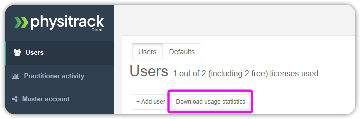 Cliquez sur « Télécharger les statistiques d'utilisation » en haut de votre page.