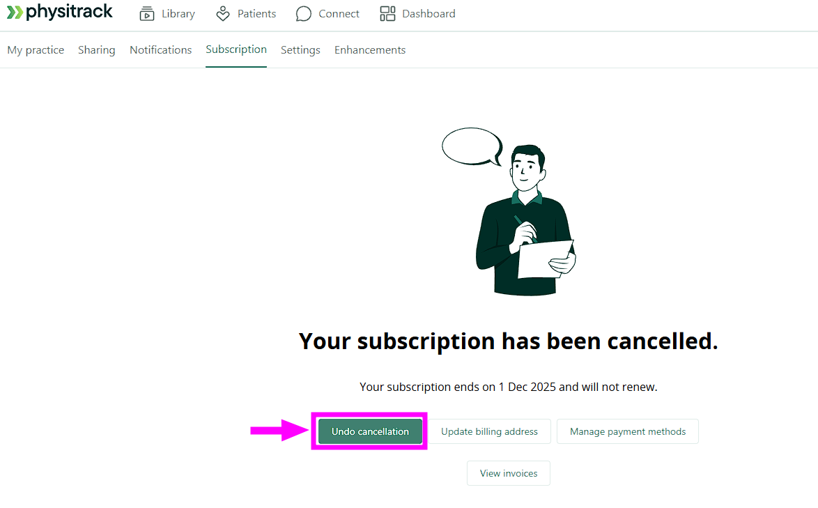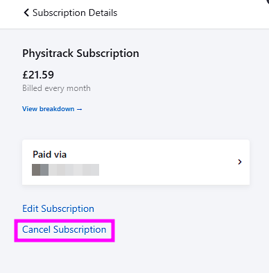 Per terminare l'abbonamento a Physitrack, procedere come segue: